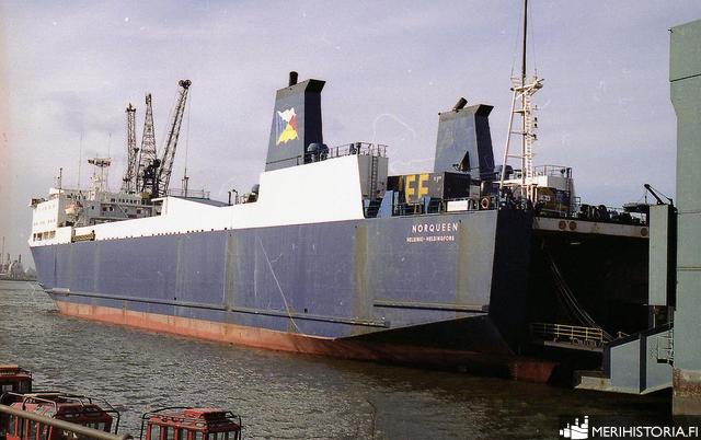 NORQUEEN registrerad i Helsingfors inför kvällsavgången från Teesside till Rotterdam (?)